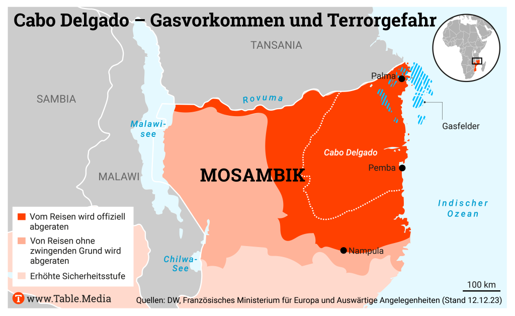 In Cabo Delgado gibt es riesige Gasvorkommen, deren Nutzung durch die schlechte Sicherheitslage verhindert wird. Allein der französische Konzern Total Energies investiert 20 Milliarden Euro, aber auch Eni und Exxon Mobil drängen in die Provinz. Welche Rolle spielen Rohstoffe in der aktuellen Gemengelage?