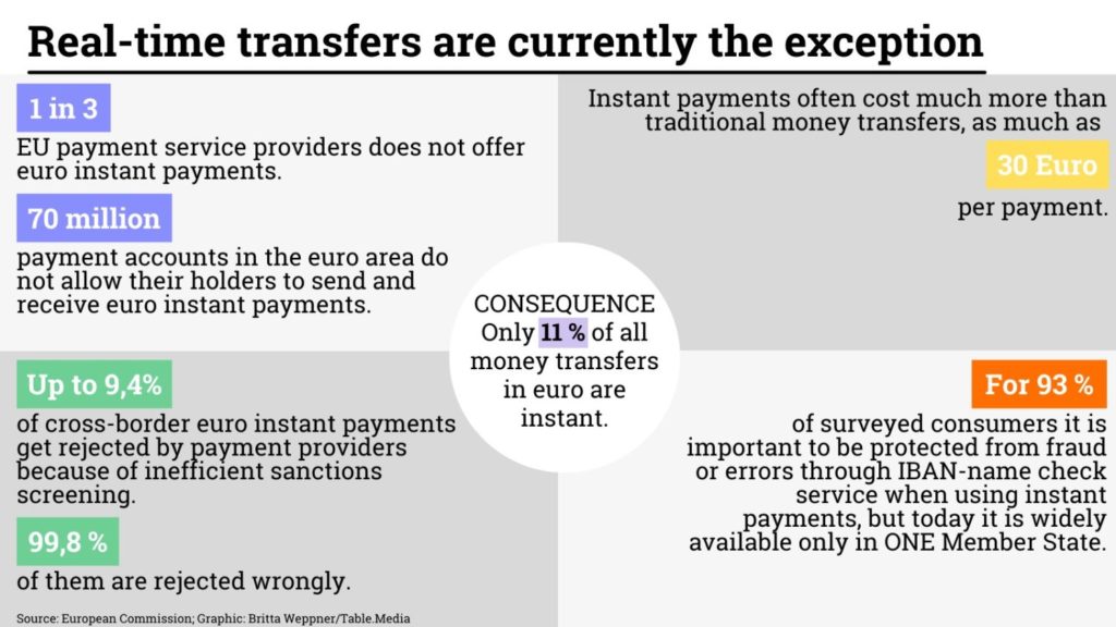 Currently, transfers to accounts within the EU take several hours to days – an unacceptable situation that the EU Commission wants to change soon. It wants to make real-time transfers not only mandatory but also free of charge.